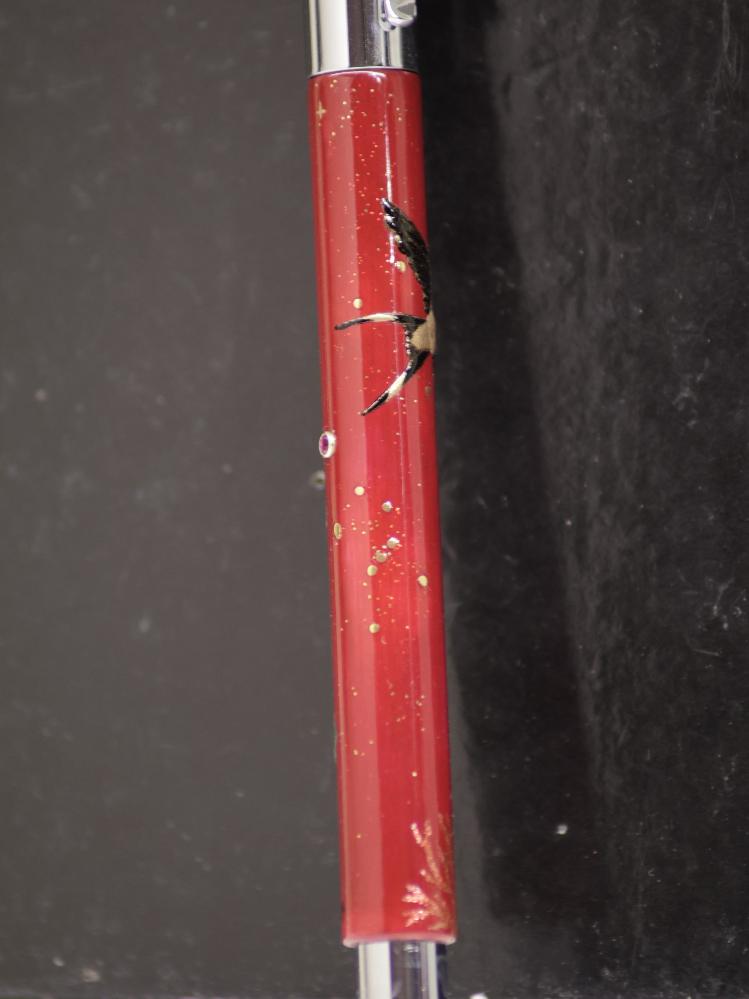 Technique: hoji primer, red nashiji, hirameji, hyomon, Seido-nuri, translucent colour paint over metal power (self invented), Rudy stone tube setting